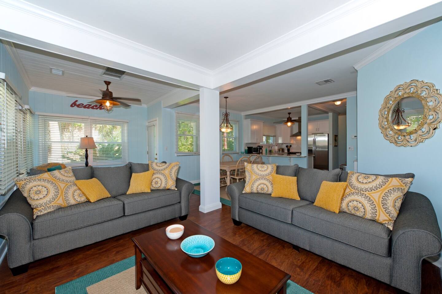Charming and cozy Clearwater Beach retreat with a house and separate cottage in TOP LOCATION. The property is located in a quiet and upscale, residential neighborhood of Clearwater North Beach, just a mile away from vibrant Clearwater Beach and its public beach life. Sit on the patio of '32 Steps to the Beach' with a glass of wine or a book and enjoy the beautiful beach views and stunning sunsets over the Gulf of Mexico. Covid-19 Update - See below. This two home non-smoking retreat has a fully furnished, well equipped house with three bedrooms, two bathrooms, an open kitchen and tastefully decorated living/dining area with a sofa sleeper. You will enjoy the nice patio with its beach views and tropical landscapping. The separate cottage is a tropical efficiency with an open floor plan. It offers a kitchen, a small dining area, a sleeping and a sitting area with a queen bed and a sofa sleeper, a bathroom and a separate outside sitting area in a lush tropical backyard. The house and cottage can be BOOKED TOGETHER OR SEPARATELY and are the perfect place for families, family get togethers or romantic get-aways. It is NOT SUITABLE FOR SPRINGBREAKERS or any group that wants an environment that allows loud parties. THE AWARD-WINING GULF BEACH IS ONLY 32 STEPS AWAY! Grill, TVs, cable, WIFI, multiple driveways for parking, beautiful landscaping. Walk to shopping, dining or island attractions. Take the public trolley around the island or go as far south as Treasure Island! NOTE: Since the house and cottage can be rented separately as well, the availability calendar will not be up-to-date. Please contact us for current availability. Check-in is 4:00pm or later; check-out is promptly at 10:00am to leave time for cleaning crew. IMPORTANT: We do not advertise on Craigslist! Be safe and only deal with the owner. COVID-19 Pinellas County is open for short term vacation rentals with guidelines that we are following in full. We take the safety of our guest and cleaning staff extremely seriously. Our cleaning crews are using sanitizer and disinfectant on all surfaces before your arrival and as cleaning is taking longer than previously it is unlikely that we can offer early check-ins or late checkouts. Our houses have well equipped kitchens and we believe that separate units are the best option for vacationing in the time of Covid-19. Florida is seeing an increase in cases at the moment and we stress the importance of guests taking travel insurance that would cover them in the event that they no longer want to travel to Florida. In the event that the administration halts vacation rentals we would of course refund guests as we could no longer accept them. We have to stress that after two months of cancellations and re-bookings we will not be able to offer refunds if Clearwater Beach remains open for vacation rentals but guests decide not to travel.