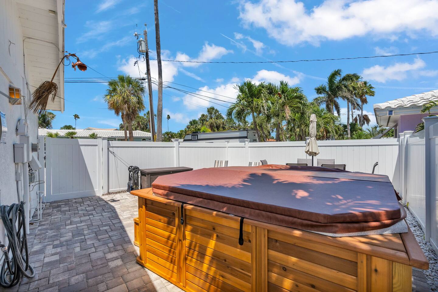 This beautifully decorated coastal home is just a short walk to an award-winning beach! Guests can choose between a private gated neighborhood access or a slightly closer public access. Both provide beautiful beaches and fabulous sunsets. With an open floor plan, 3 large BRs, and updated baths, this home will be perfect for one or multiple families. Relax and unwind in the gigantic SPA for 6 n the fenced in backyard! A Beach Cart and Beach Chairs are also provided! New Pickleball Courts nearby!