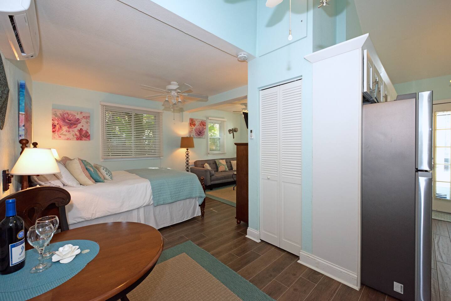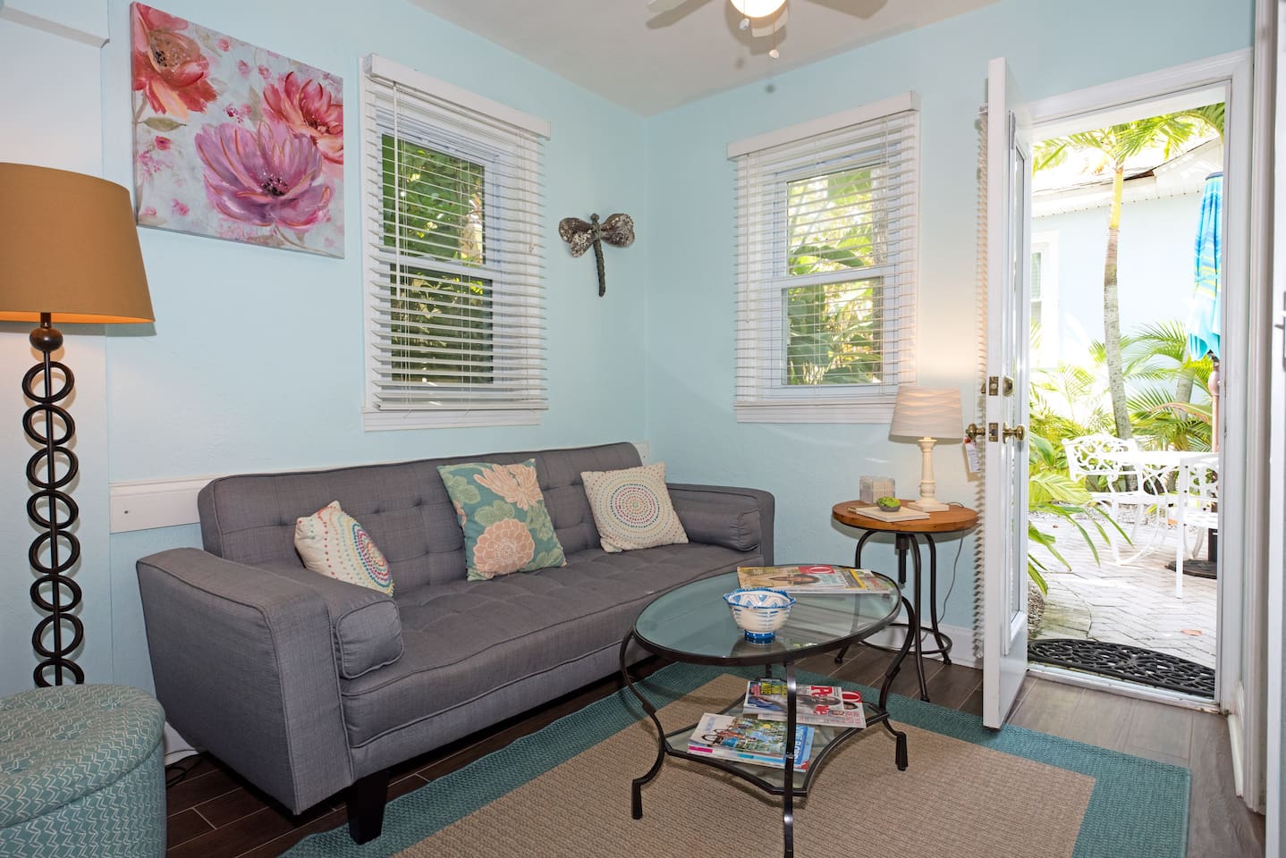 Our tastefully decorated and cozy Cottage offers everything you need for a romantic get-away and a relaxing stay in sunny Clearwater Beach. The Cottage is part of our vacation property '32 Steps to the Beach' which consists of a 3 bedroom house and a separate 1 bedroom cottage. The Cottage can be booked separately or together with the House. To book The House or House & Cottage together please see the listings at the side of this page. Covid-19 UPDATE - See below. The Cottage is located in a quiet and idyllic residential neighbourhood of Clearwater North Beach. The beautiful, award-winning and pristine Gulf Beach is just steps away from the house. If you prefer to have a calm beach day away from the crowds this is where you want to stay. Clearwater Beach with its vibrant public beach life and diverse restaurants is just a mile away. The Cottage offers a spacious, elegant room with a queen bed, a sitting area with a sofa sleeper and a remodeled bathroom. The new kitchenette gives you the opportunity to prepare meals and enjoy them in the small dining area or outside on the secluded patio. Savour a cup of coffee in the morning, a glass of wine after a relaxing day on the beach or enjoy a BBQ in the backyard. Clearwater North Beach is an upscale, safe residential neighborhood that welcomes families and couples. It is not suitable for 'spring breakers' or any group that wants an environment that allows loud parties. The area of Clearwater offers an astonishing diversity of leisure activities. If you enjoy sports you might want to try out the numerous jogging, skating, biking, golfing, hiking, swimming, surfing, tennis or fitness opportunities. In Florida's state parks and on the breathtaking beaches you will experience the beauty and serenity of nature. Several theme parks guarantee fun for the whole family and the diversity of the many restaurants in the area will surprise you. From casual to upscale dining, from local and national to international cuisine - you will find it all! Please also visit our website for more information about our Clearwater Beach homes, Clearwater Beach and the area: www.clearwater-beach-vacations.net Check-in is 4:00pm or later; check-out is promptly at 10:00am to leave time for cleaning crew. We will be happy to answer all of your questions. When using the 'Book it Now' button please include information on the ages and number of people in your party to help us make a quick decision on your request. IMPORTANT: We do not advertise on Craigslist! Be safe and only deal with the owner. COVID-19 Pinellas County is open for short term vacation rentals with guidelines that we are following in full. We take the safety of our guest and cleaning staff extremely seriously. Our cleaning crews are using sanitizer and disinfectant on all surfaces before your arrival and as cleaning is taking longer than previously it is unlikely that we can offer early check-ins or late checkouts. Our houses have well equipped kitchens and we believe that separate units are the best option for vacationing in the time of Covid-19. Florida is seeing an increase in cases at the moment and we stress the importance of guests taking travel insurance that would cover them in the event that they no longer want to travel to Florida. In the event that the administration halts vacation rentals we would of course refund guests as we could no longer accept them. We have to stress that after two months of cancellations and re-bookings we will not be able to offer refunds if Clearwater Beach remains open for vacation rentals but guests decide not to travel.